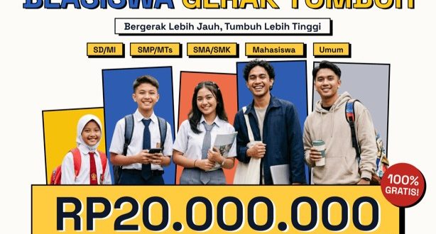 Home / Ekonomi Bisnis / Beasiswa Gerak Tumbuh 2026 Resmi Dibuka: Rp20.000.000/Semester untuk Semua Jenjang Pendidikan Tanpa Syarat IPK